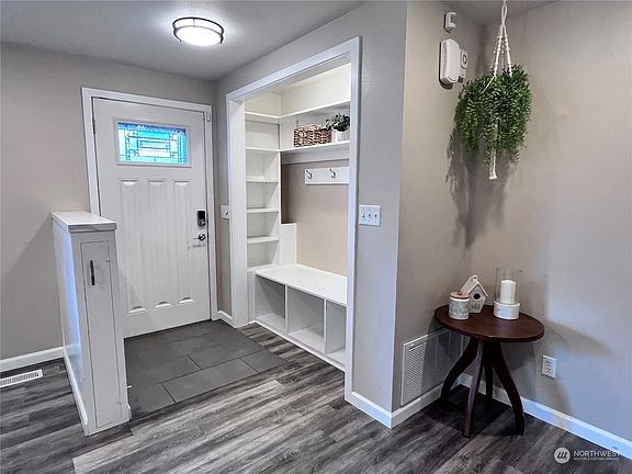 Fall in love with loads of storage & custom details throughout! Move-in ready multi-level home ideal for entertaining nestled on partially fenced corner lot atop Mt. Vernon hill. Spacious kitchen w/custom cabinets, SS appliances, granite countertops & French doors to patio where you can literally shoot hoops at the sports court while BBQing. Living rm boasts gas frpl, entry includes built-in coat tree w/bnch, dining rm has Dutch door to patio & 1/2 stairs dwn to bonus rm w/lg. closet, door to backyrd & to oversized laundry that could dbl as hobby spc w/lg. closet, garage access & 1/2 bath w/laundry chute. Upper level includes 2 extra deep hall closets, 4 beds & 2 baths. Roof & water heater replaced in 2016 & new floors installed in 2018.