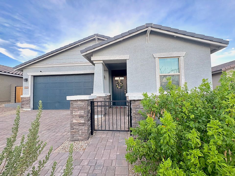 Welcome to your new home a beautifully maintained 2022 home residence with quick access to shopping, dining, parks, and the I-10 freeway. This spacious 4-bedroom, 3-bathroom home plus DEN offers a bright and open floor plan perfect for comfortable living and effortless entertaining. A modern kitchen with quartz counter top and tile throughout living space and carpets in the bedrooms. Enjoy Arizona's stunning sunsets from your private backyard, complete with a covered patio and low-maintenance landscaping/Exterior security system