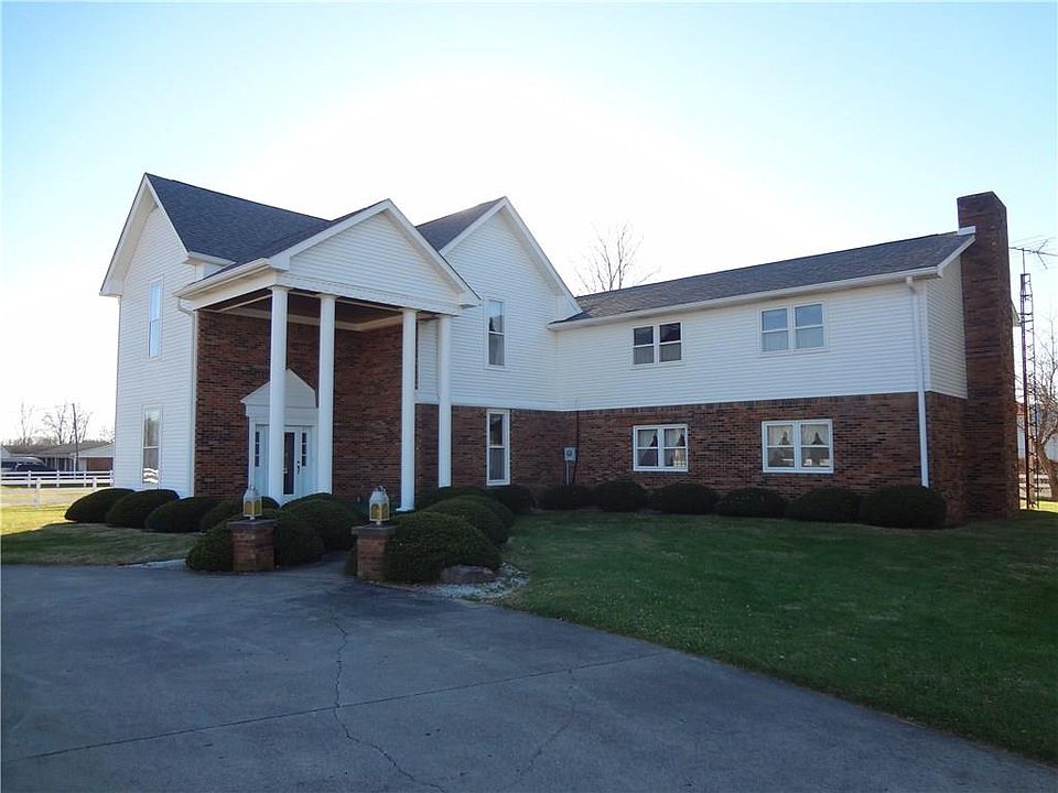 Location, location, location! Horse farm near town and interstate. 4 bedroom, 4 full bath, lots of walk-in closets and storage. Two kitchens w/appliances. 38x26 rec room w/pool table, fireplace and additional kitchen area. Three car attached garage, storage barn plus 14 stall horse barn w/some equipment included. Tack room, arena, horse walker, 2 run-in sheds, hay mow for 600+ bales of hay. Duke Energy bill covers house, garage, barn & 5 dusk/dawn lights. Pool table and all appliances included. Home needs cosmetic updates. 2 new furnaces & A/C in 2010, new roof in 2011. Easy to show.