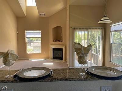 The largest floor plan and one of the best locations in Triana South. This unit faces the grassy area with picnic table, bbq and beautiful trees. The condo has high ceilings and is very bright and sunny. Great floor plan with the kitchen open to the living room and fireplace. A patio off of the living room and the kitchen. Two bedrooms, two full bathrooms and a big loft with a closet this can be used as a bedroom, office, playroom or workout area. Two car garage. VACANT and ready for a quick close.
