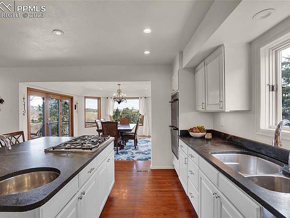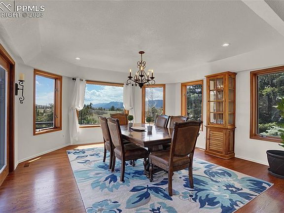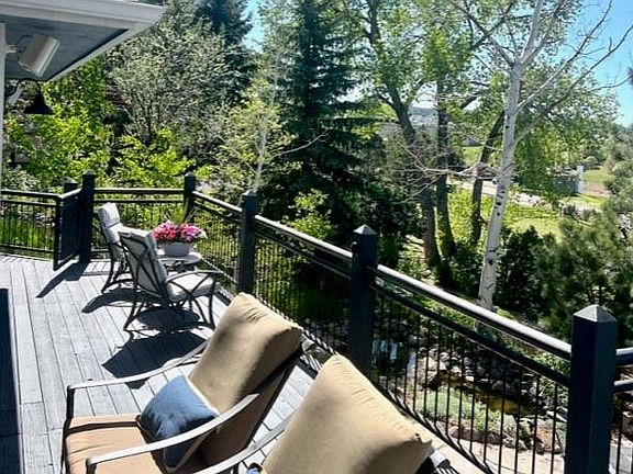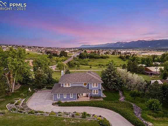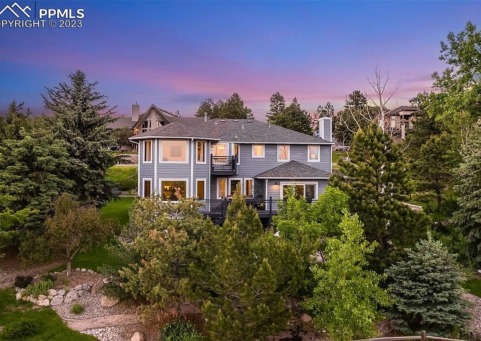 SPECTACULAR VIEWS of Front Range & Pikes Peak, no through traffic on a cul-de-sac with wooded privacy from neighbors on over 1/2 Acre! 5 Bedroom 4 Bath on 3 levels of living with Walkout. 2023 remodeled, grey with white trim home. "Resort style" water feature enjoyed from multiple decks and patios. New exterior, interior paint and deck stain 2023. Desirable Woodmoor, low HOA, travel checks, dedicated open spaces, D38, Lewis Palmer A + rated schools. Custom built home wood doors throughout, real hardwood floors. Oversized, side entry, 3 car garage on fully landscaped nature walking trails and mature landscaping. Chef’s dream gas, cook island. Open concept kitchen, dining, and living, 2 sets of french doors leading to deck perfect for entertaining. All Stainless appliances, double oven, prep sink, 2 disposals, large walk in pantry w/ Soapstone counters. Upper+ lower deck custom metal railings, lower flagstone patio perfect for your own spa. The Primary Bedroom Suite upstairs has breathtaking views of Front Range, 2nd gas fireplace, private deck, and attached 5 piece bath. This well cared for home has 3 levels of living, 4 walk-in closets. Bedroom level laundry with high capacity washer/dryer. Walkout Basement to lawn and patio with seperate, smart lock's own main entrance, wet bar, kitchenette has been used for (HOA allowed Short Term Rental) or Separate Living Quarters. 5 min access to I25, amenities, and quaint town of Monument. Woodmoor' private fishing ponds, bike, walking trails, toboggan hill, access to snowshoeing/cross country. 5 min. to YMCA and a private, full service Country Club of Woodmoor w/ membership fee. With so much space, privacy, amenities, easy commutes to Denver, Springs, views, majestic landscaping, multi-generational living or income source, walking distance to coffee shop, brewery, and DIA airport shuttles, you can live the Colorado Dream. Move in Ready.