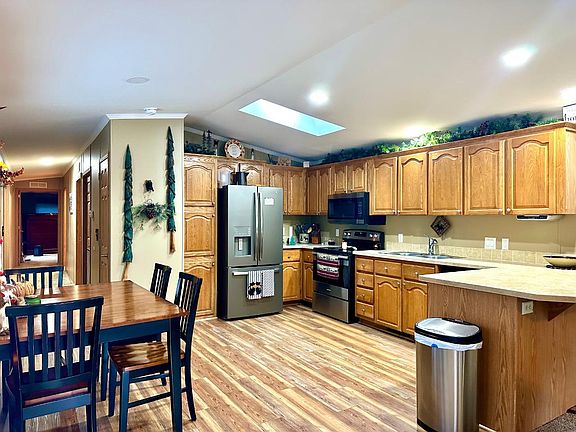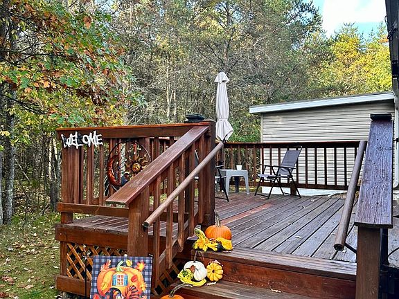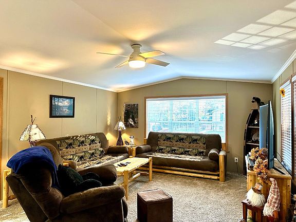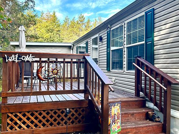 Cute, cozy and meticulously maintained 3 bedroom, 2 bath mobile home with attached garage. Located on a dead-end road offering optimal privacy and has easy access from a blacktopped road. Open concept living, dining and kitchen area, large bedrooms, master bedroom suite with full bathroom & walk in closet, dedicated laundry room along with multiple updates throughout: new paint, carpet & laminate wood flooring, ceiling fans, blinds and appliances. The door from the attached garage was added to allow easy access into the home during the winters months or ease in bringing in the groceries on a rainy day. Includes some high end furnishings: living room couches, end tables, coffee table & dining room table. Lounge or entertain on the large deck or simply take in the quiet sounds of nature. Opportunities like this don't come around often. Act quick before it's too late!
