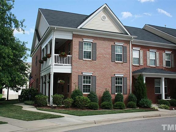 Brick end unit 3-bedroom townhouse 3 miles from downtown Raleigh! Lives like a single family home. Granite and stainless in kitchen. Crown moulding and hardwoods throughout first floor. Open floor plan with lots of light. Gas fireplace and custom built-ins. Two walk in closets in master. 1 car garage with double parking pad. Additional parking adjacent to house. Energy star certified home. Beautiful landscaping. Community pool, clubhouse, gym, tennis courts, volleyball, and great neighborhood events.