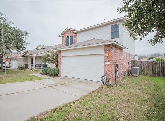 Awesome Pflugerville location between Dessau & Wells Branch! Two-story red brick home with a great floorpan -- flex room downstairs for an office or formal dining room, play area/second living room upstairs in addition to 3 upstairs bedrooms. Kitchen is open to the family room, and large windows throughout the house allow for wonderful natural light. Huge walk-in pantry! 2-car garage with automatic opener. Front landscaping maintained by the HOA. Plenty of parking in addition to garage. Fridge conveys.