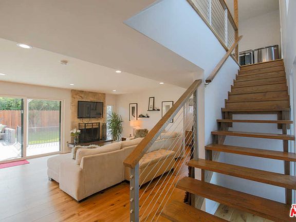Completely remodeled from top to bottom private Mid Century Modern 3 bedroom, 2 bath home just minutes from the Pacific shores. Tucked away behind secured gate you'll find modern finishes throughout, wide plank oak flooring in entire home. The master and 2nd bedrooms feature French doors, leading to an oversized deck. Customizable organization system in master closet. Carrera marble tile and flooring in bath off master. The light and bright kitchen boasts durable and easy to clean. Custom European high gloss laminate cabinets, stainless steel Viking appliances, butcher block counter tops and wall mounted tv. A downstairs den/office/study is perfect work or study at home.. New everything, including central heat/AC, roof. electric, water heater and plumbing. A wood burning/gas fireplace (grandfathered in) in l/r. Add an outdoor oasis with enclosed patio, grill, outdoor dining in a very private, fenced yard. exterior security cameras, outdoor spiral stairs lead up to deck, finished garage