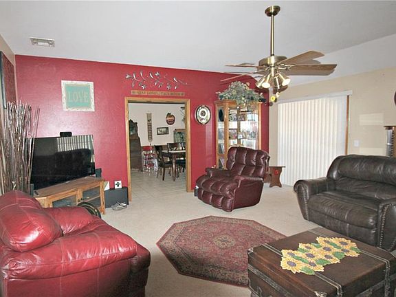Very Nice Home in Culdesac with Large Backyard ~ Storage Building & Storm Cellar in Backyard ~ Backyard has a divider fence to keep dogs out of one side ~ Ceiling Fans in all Three Bedrooms & Living Room ~ Indoor Utility ~ Stainless Appliances in Kitchen recently updated ~ Fridge, Washer & Dryer all remain with the property ~