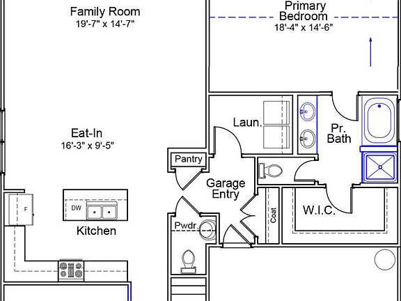 This two-story home comes with 4 bedrooms, 2.5 bathrooms, an office and a loft upstairs. Just inside the front door is a welcoming foyer and an office to the left. The kitchen opens to the eat-in area and family room with crown molding through the main areas. Located on the first floor, the primary bedroom includes vaulted ceilings, a bathroom with a dual vanity, garden tub and separate shower, a private commode, and a large walk-in. Each bedroom upstairs also has a walk-in closet, and they share another full bathroom. In addition, the second floor contains a loft space and a walk-in attic space. A covered patio and a fully sodded yard with landscaping and irrigation are included. EST Completion Fall 2022