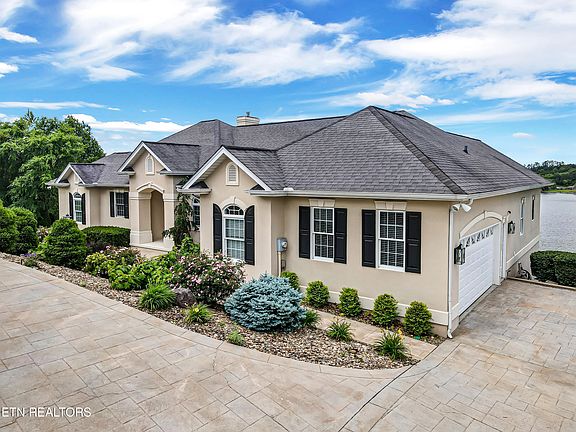 Located on the main channel of the Tennessee River on Fort Loudon Lake, this custom built home offers it all. Situated across almost 3 acres with approximately 330' of shoreline on deep water. This unique property spans two lots, with an additional separately deeded third lot. Located on a private cul-de-sac lot with neighboring woods, this offers the ultimate in privacy. Meticulously maintained and updated in 2013 & 2024. Fabulous open floor plan with hardwood floors, generous sized great room with fireplace & a wall of windows opens to the new kitchen. Features primary + second bedroom on main level. NEW gourmet chef's kitchen complete with custom cabinetry, quartz countertops, large island and upgraded appliances. Primary suite with panoramic view and fireplace adjoins a new plush bathroom features a massive tiled shower, separate tub, tile floors and dual vanities. Large walk-in closet. Spacious main level laundry with new floor & lots of cabinets. Basement features rec room, complete 2nd kitchen with stove, fridge, dishwasher, etc. plus 2 additional ensuites plus a huge unfinished area plus dedicated exercise room. Breathtaking views from every bedroom! Recent updates include NEW trex deck (w/ retractable awning), NEW kitchen, NEW master bath, NEW interior paint, new int/ext light fixtures & remodeled 1/2 bath. Two docks equipped w/ 3 boat lifts & 2 personal watercraft lifts! A separate driveway leads to the boat docks, offering easy access to the water, while an enchanting fire pit area sets the stage for memorable gatherings under the stars. Wi-Fi controlled irrigation system w/ new pump. Extensive professional landscaping. This remarkable residence presents a rare opportunity to experience waterfront living on one of Tennessee's most outstanding lakefront lots.