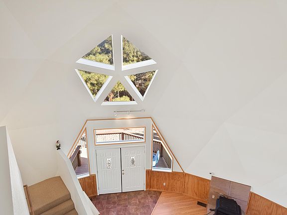 Here is a wonderful opportunity to own one of the coolest dome homes available! There is a 2,000 square foot basement that allows this home to be expanded to 5,029 SqFt! If you enjoy tall ceilings, tons of natural light and an open and airy feeling, this is the place for you! 27 foot tall ceilings in the entry and a 900+ square foot great room with fireplace are amazing features of this home. Triangle windows create visual interest and let in all the natural sunshine. Fireplace in the great room to keeps you cozy. Main floor living with master on main with private bath. 3 car detached garage on one heavily treed acre and large deck to enjoy. Producing WELL also makes this home very special! Domes are the strongest structures ever built. Call today and look for Gnome in Dome games!