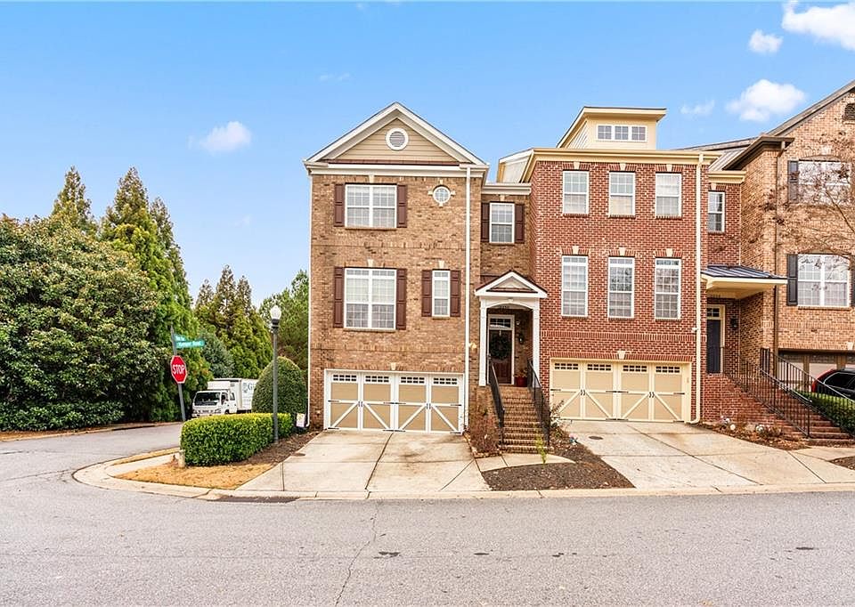 Beautiful brick end unit tri-level townhome with a full driveway and a two-car garage. Located in a quiet community offering a great sized community pool and clubhouse. Surrounded by lots of shopping and dining, year around entertainment and local events, as well as major highways for an easy commute. Split-level foyer, wrought iron spindle staircases, wainscoting, LVP flooring, and desirable lighting, are just some of the tasteful features this home has to offer. Open concept main living area has been designed with functionality in mind. Sprawling white granite countertops, stainless steel appliances, large island, and a view of every room. Enjoy a cozy fire in the family room, or a peaceful morning on your balcony. The primary suite is complete with a sitting area, split vanities, walk-in closet, frameless shower, and the most relaxing soaking tub. Two more bedrooms and a full bathroom upstairs. The ground floor offers an additional bedroom, full bathroom, bonus room, and a covered patio. With exterior entry and garage access, it could be an apartment or in-law suite! Minutes from Halcyon and Downtown Alpharetta.