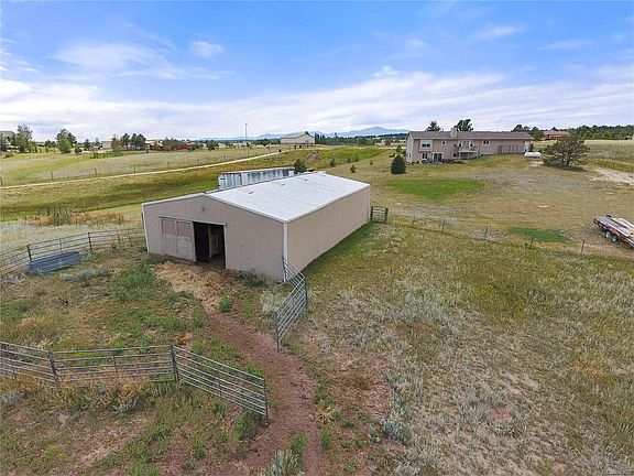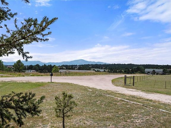 Almost 20 acres on a quiet cul-de-sac w/ a meticulously maintained rancher in Black Forest w/ exceptional Pikes Peak views, a walk-out basement and a 40x40 barn! The home is open and bright w/ tons of large windows for natural light. Great room with gas log fireplace, vaulted ceilings, walk-out to the back deck. Open kitchen with an abundance of cabinets, hardwood floors, pantry, granite counters, new stainless steel appliances including a double oven, recessed lighting and breakfast bar. Located in a horse friendly community with no HOA. Main level master bedroom w/ private full bath featuring a double vanity and a walk-in closet. Finished and spacious walk-out basement with home theater, 2 additional bedrooms, full bath and spacious family room with walk-out to the lower level patio. Open concept dining room with large bay window and hardwood floors. The 40x40 barn has water, electric, 2 stalls, hay storage and tack room with additional space for a workshop, storage or tractor.