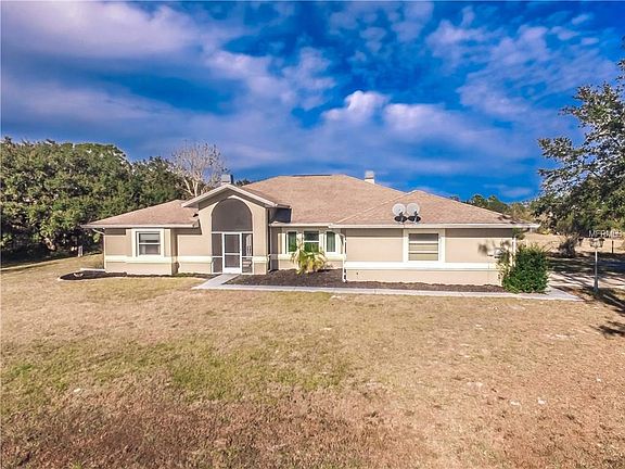 Welcome to country living in the deed restricted community of Prairie Creek West, with great open spaces, fresh air, serenity and spacious homes. A true equestrian delight in Prairie Creek West; 5 acres with a spacious home, pool, detached workshop, stables and pond. The large kitchen overlooking the family room allows for fun entertaining; the chef in the kitchen is never separated from guests while prepping for meals. The formal dining room off from the kitchen allows for larger group gatherings. Wood burning fireplace in the family room for those chilly nights. With the split bedroom plan owners and guests alike are afforded privacy. Lanai and pool deck are covered with pavers and the outdoor lighting around the pool create a nighttime wonderland. The master bedroom has a two-sided wood burning fireplace with views from the master as well as the cozy sitting area where you might want to curl up in your favorite chair with an enjoyable book and a nice beverage. One of the guest bedrooms was used as an office and has built in shelves and desk which can be easily removed. Both the baths have been remodeled. The workshop once served as a tack room adjacent to the stables and had been redone to allow extra storage and work bench for those ongoing projects, workshop also has a separate a/c window unit for cooling. So much potential for this "diamond in the rough". Call for your showing today!