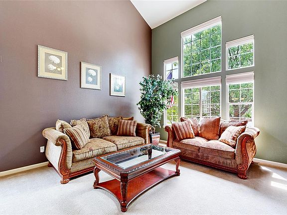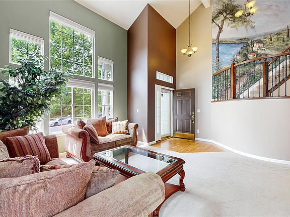 • Description: Living Room With Vaulted Ceiling, Cathedral Window, Hunter Douglas Power Shade/Carpet