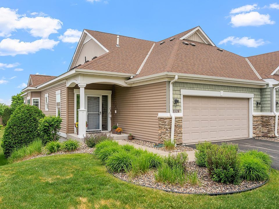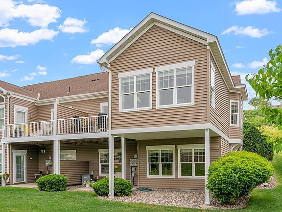 Walkout Rambler Townhome in Trout Run Preserve! This stunning 3 BR, 3 BA end-unit is open, bright, & in perfect condition. Constructed by Ron Clark, over 2,300 square feet of open-concept living & sound construction. The kitchen is airy and large, featuring gorgeous hardwood cabinets, granite countertops, center island, & stainless steel appliances. Kitchen opens to the dining & living room w/ an abundance of natural light & breathtaking panoramic views. The sunroom is perfect for soaking up the sun or simply taking in the scenery. The large deck is private & offers beautiful views of Minnesota River Valley. Master BR has vaulted ceilings & a walk-in closet. Downstairs, the family room boasts a gas fireplace, while the patio provides outdoor entertaining space and 2 additional BRs. The exterior is inviting and and boasts a two-car garage, \ mature & open landscaping w/ vast views. It’s a rare and exceptional home that promotes a tranquil & convenient lifestyle.