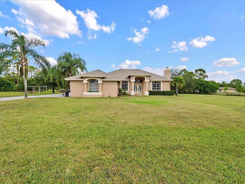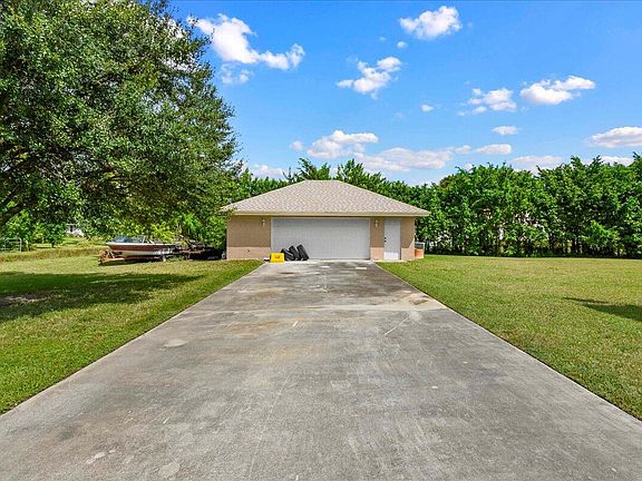 Welcome to the country life at its best with all the convenience of being close to the city.This meticulously taken care of large open kitchen, 3 bed 2 bath, split floor plan,vaulted ceiling home is nestled at the end of a private street tucked between two canals for complete privacy on 1.31 acres. Complete peace of mind with newer A/C and newer roof 2019 & complete hurricane shutters. Plenty of room to bring all your big toys(RV, Boat, Jet Ski & more). Large 2 car garage plus an additional detached 2 car garage fully air-conditioned.