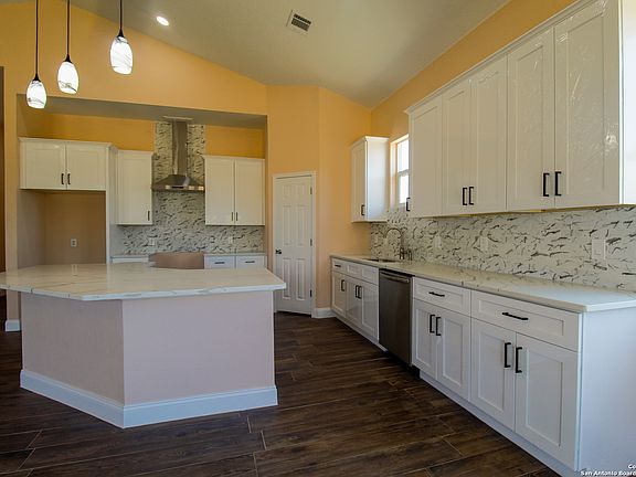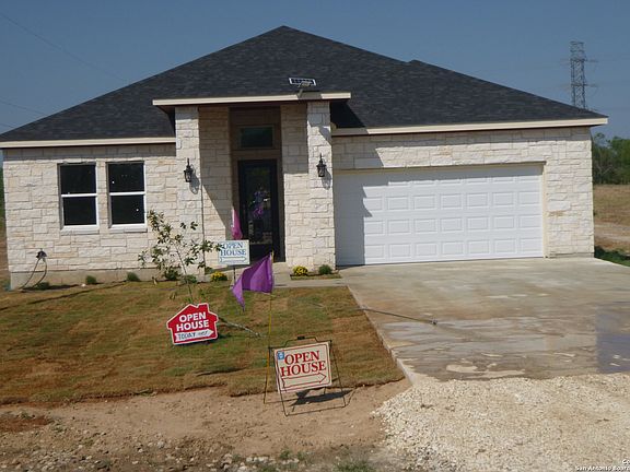!!! Country Living Under The Stars... Yet So Close To Fishing Paradise & City Life. Come & Show This New Built Custom Home By Calaveras Lake, Home Showcases Open Floor Plan With High Ceilings & Recess Lighting, Beautiful Kitchen With Extended Quartz Counter Tops, Combined With Gorgeous White Cabinetry, Huge Dining / Living Setting For Those Family Gatherings, Huge Master Bedroom With Double Vanity, Free Standing Glass Showers With Walking Closet, Beautiful Ceramic Tile Thru-Out , Convinient Inside Laundry Room & Attached 2 Car Garage. Home Sits On 1.042 Acres Of Level Land. Easy Access To Loop 1604 & Hwy 181.