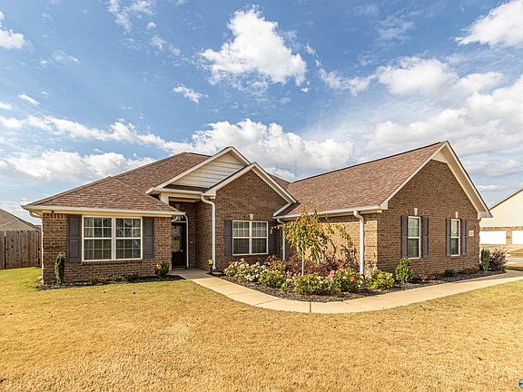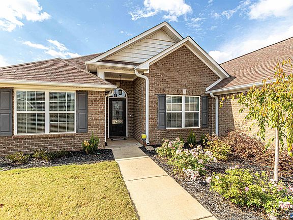 This custom home, loaded with upgrades is situated on a large corner lot, conveniently located in Alabama's Golden Triangle. Only a 15–30 minute drive to major employers throughout the Greater Huntsville area. A few of the exceptional features include: all wood and tile flooring, granite countertops, gas range, isolated Master, bonus room with versatile custom built-in converts to murphy bed or 2 desks for teleworking, extra deep 3 car garage, tankless water heater, 36" wheelchair accessible doors/hallways, irrigation and beautiful outdoor entertaining space with wood burning fireplace. Don't miss this gem! Get your showing scheduled fast!