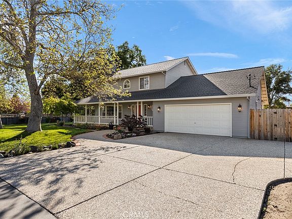 The Barndominium is a WOW and must be checked out! This structure has its own well and PG&E with options galore, and has its own bathroom. Now, let's get to this great home that is situated on .69 acres on a corner and a cul-de-sac!! Nestled among big mature trees and wonderful plantings, it just seems that everything is in bloom! Butterflies and birds will love this place! This property has never been offered before and is a rare find as it is close to a highly rated charter school K-8 and has room for 4H and FFA animals. Thie wrap around porch is inviting and begs you to sit on it sipping something looking out onto the views from this vantage point. Or perhaps in front of the fire pit? This Brand New composition Roof was just installed, home has fresh paint, new appliances, and a newly installed water filtration whole house system for delicious and safe drinking water. Did I mention these gorgeous Hardwood floors? Natural light flowing through walls of windows for interior plants to love and appreciate! This attached 2 car garage with storage cabinets and a pull ladder from the ceiling will give you EVEN more places to store your precious items. Don't miss noticing the epoxy floors that keep this garage clean, neat and tidy!!! You'll know you've arrived when you see this beauty with the front door framed by stained glass and flowers adorning the meandering walk way framed in brick ! This just might be it, the place that you've been waiting for, the one that you will call HOME!
