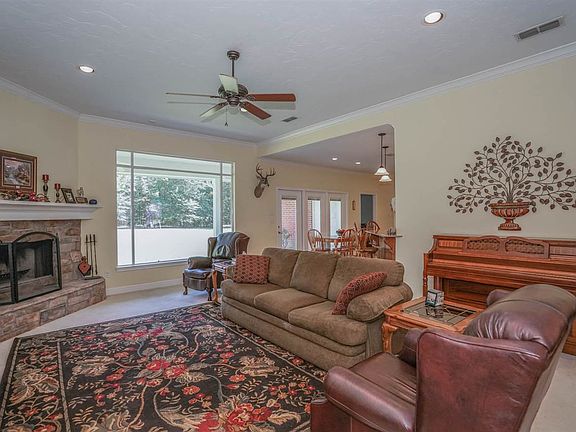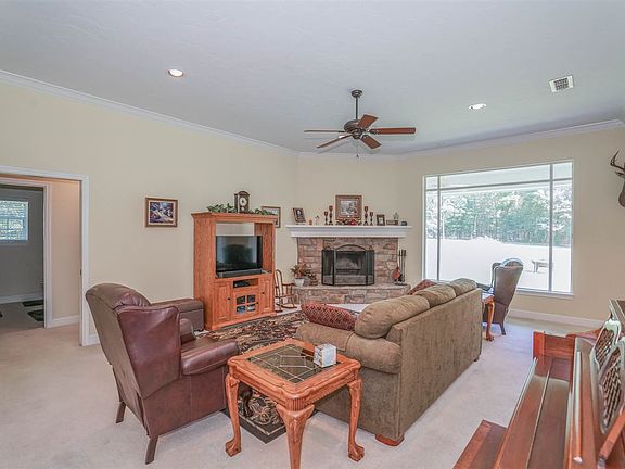 Great space inside and out. This home offers a large open feel as soon as you walk in. Large formal dining is open to living area. The living area has a huge picture window for enjoying the wildlife from the comfort of your living room. Lots of crown molding throughout. Special touches like custom closets and "in the door" light switches, insulated double pane windows and gutter guards. Master bedroom has tray ceiling and exterior door. Master bath has double vanities with marble tops, separate shower and 6' jetted tub. Kitchen has custom red oak stained cabinets, lots of counter space, double ovens and fridge can be negotiable. Porches on front and back have outdoor ceiling fans plus some motion flood lights. House has hardy siding on exterior. House sits on 2.3 acres with room for a pool, shop or whatever else you would want outside. Front yard has new sprinkler system installed.