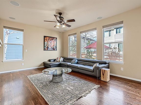 Welcome Home! This beautiful open floor plan home is turn key ready. This home features 4 bedrooms, 4 bathrooms and an oversized 3 car garage. As you enter the home you are greeted with a spacious sitting area and dinning room. The office/Den is on the main floor with French doors. The stair case going to the upper level is curved for those amazing family photos. The kitchen has all stainless steel appliances, (LG Refrigerator & Dacor convection range), granite countertops and a ton of cabinets. To finish off the main level you have real hardwood floors, 9' ceilings, built-in surround sound in living room with a gas fireplace and a large mudroom with utility sink. Other features are a 2 stage high-efficiency furnace (96% AFUE) with humidifier installed Jan. 21, structured wiring cabinet in basement with cable (Coax) and internet (CAT-5e) distributed to office, living room TV nook, master bedroom and kitchen (CAT-5e only), whole home surge protector in main panel, 6 zone sprinkler system including drip line and the large 3 car garage includes sturdy metal shelving. On the upper level you will find the luxury master suite that includes a gas fireplace, large jetted tub and large walk-in closet plus the convenient upstairs laundry room. Enjoy BBQ's or entertaining in the backyard. Broomfield allows a short commute to both Denver and Boulder. RedLeaf development offers a short walking distance to Paul Derda Recreation Center, Broomfield County commons park, Intramural football & soccer fields, Dog park, Broomfield commons open space trails, mountain views and July 4th fireworks. Closing date must be after 1-1-22.