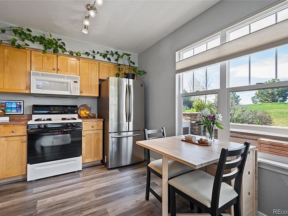 Bright and airy, this end-unit townhome is nestled deep into the desirable Old Farms neighborhood and backs up directly to Trail Winds Open Space! The covered front porch welcomes you as you enter the open-concept living room, complete with impressive cathedral ceilings, a cozy gas-log fireplace, and sprawling windows that offer views of the tranquil green space that borders the property. Enjoy entertaining in the perfectly triangulated dining, living room, and kitchen, or grill out on the new back deck using fresh-grown herbs from your garden box. Delight in the peace of mind that comes with updates like new pet/waterproof flooring throughout the main level, and a new refrigerator, dishwasher, air conditioning, furnace, and clothes washer. The unfinished basement offers endless potential with both stubbed-in utilities for a full bath add-on and a big, bright egress window fit for an additional conforming bedroom. With custom overhead storage, bike racks, and additional shelving, the 1-car garage is dressed to impress. Outdoor lovers will appreciate that this fantastic community is just steps away from walking and biking trails, the community park, and Trail Winds Park and Open Space. Less than 10 minutes from the Lightrail and an equidistant drive from downtown Denver and central Boulder, this location makes commuting a walk in the park. Showings begin next week!