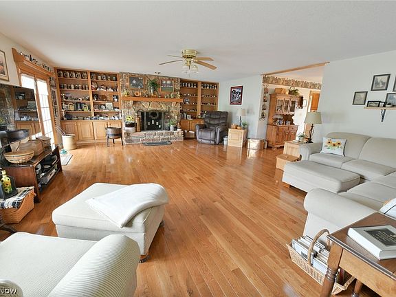 Situated on 25 acres, just outside of Frazeysburg in Tri-Valley Schools. With over 5,000 sq ft of living space, this beautiful, private, one story home will not disappoint. Home offers 4 bedrooms, 2 full baths, 2 1/2 baths, and hardwood floors throughout. The Owner's suite bath features double sinks, a spacious, tiled shower, and a walk-in closet. The stone fireplace will catch your eye in the family room. The finished basement is an awesome rec room and also offers plenty of storage. Other amenities this home offers are a central vac system, video security system, whole house generator, Geo Thermal heating and cooling system, 4 car attached garage, 2 car detached garage, a 24 x 40 RV garage, and much more. Relax on the back patio and enjoy the views while watching the wildlife roam the property.
