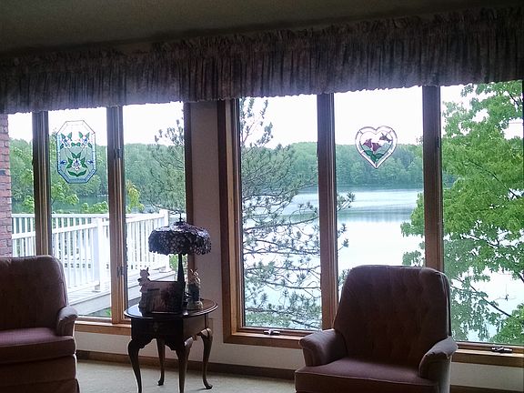 With sweeping views of Silver Lake, this large lakefront home, minutes off I-75, is a Northern Michigan getaway that's easy to get to. Bring your sense of adventure - this property has 80 ft of all-sport, trout-stocked lakefront and a heated 3 car garage to store all the boats and toys! Take in the stunning sunsets from the lakeside master suite. Enjoy a perfect meal of fresh rainbow on the full-length deck and patios. Floor to ceiling windows provide a breathtaking view from nearly every room, while 3 fireplaces add warmth and architectural interest. At just under 5000 sf, oversized rooms are a feature of the main 4 br, 4 bath home. The main floor features a master with fireplace and an additional ensuite bedroom. Cathedral ceilings grace the large living room and kitchen with cozy sitting room...perfect for entertaining! Downstairs are two bedrooms, two baths and more wide-open views. The full walkout basement has a convenient kitchenette and a bonus room that can be used as an office, craft room, yoga studio or even a greenhouse. All of this living space is covered under a desirable and durable metal roof. The additional bedroom with ¾ bath is located atop the 3 car garage. Bring just yourself or a group of family & friends, you'll have plenty of room to enjoy this perfect Lakefront setting!
