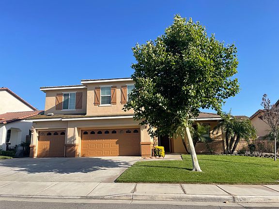 Eastvale Home For Lease; Large home with 5 bedrooms 3 baths. In the first level you will find a formal living & dining room, a large updated kitchen with lots of cabinets, caesarstone, stove, oven, microwave, dishwasher water filter in the sink and water softener through the whole house. The kitchen is open to the eating area and family room room with fireplace, downstairs are also two bedrooms and a 3/4 bath, laundry room and a 3 car garage. The second level has 2 large bedrooms one full hall bath, a master suite with a very roomy walk in closet, a family room with doors that could be a 6th bedroom if needed. The backyard is all concrete with a covered patio. Close to schools and in walking distance to Eleanor Roosevelt High School, Silverlake and Eastvale Community Park, near 15, 60, 71 and 91 freeways. Contact me for more details No smoking allow. Tenants are responsible for all utilities and a $50.00 payable to the landor for gardener.