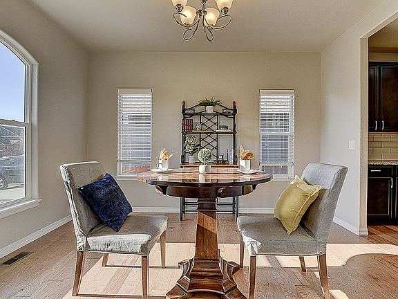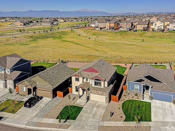 **SECTIONAL COUCH IS FOR SALE**Beautiful, Golf Course Community, Move-in ready, 2 story home that backs up to open space! Handsome covered front entry porch welcomes your guest to a sea of hardwood floors. To the left there is currently a formal dining room, that could be a den, office or home to your baby grand piano. These hardwood floors it will guide you to the butler's pantry that features granite counter tops & a charming custom pantry. As you enter the heart of the home, you will be amazed as it opens to a beautiful gourmet kitchen that open to the great room & very spacious 2nd dining area. This beautiful kitchen show cases a double oven, gas range, handsome back splash & large island w/ additional storage! This kitchen is truly perfect for the chef in the family, to entertain out of town guest or quiet nights at home. Imagine entertaining guest or enjoying a good cup of joe in your back yard that backs to open space & showcases majestic view of Pikes Peak. The great room features soaring ceilings and gas fireplace. As you make your way up the stairs, the charming rot iron stair case will guide you to the upper level. Head to the Master Retreat, upon entering, you will be amazed at the space, vaulted ceiling & the large windows. This lovely Master retreat adjoins to your private, 5 piece Master bath and walk in closet. This loft opens to the beautiful great room on the main level & the Laundry room is spacious and features granite counter tops & the same handsome cabinets in the kitchen & bathrooms. As you make your way down to the unfinished basement, you will notice it is pre plumbed for a full bathroom and spacious enough for 2 additional bedrooms, rec room or your future theater room. This home is conveniently located near Military bases, shopping, schools, state of the art Community Center, Golf Course, walking trails, play ground, in door/out door pool and so much more! Come see what this beautiful Colorado Home has in store for you!