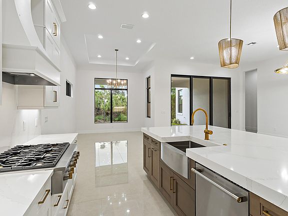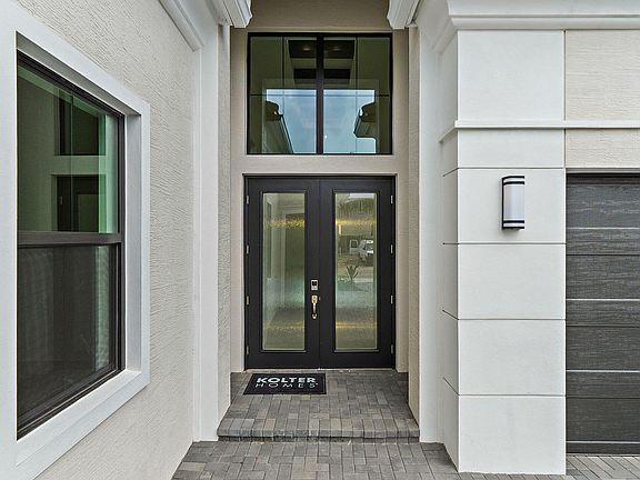 **NEW CONSTRUCTION** Move-in ready new construction by Kolter Homes featuring the Michelangelo floorplan on a preserve homesite in the gated community of Artistry Palm Beach Florida. This single-story home offers three bedroom suites, three full bathrooms, one half bath, and a split three-car garage. Interior upgrades include custom lighting, decorative wood beams in the foyer, tray ceilings, insulated impact glass, and spray foam insulation. The kitchen is equipped with gas cooking, a 48'' Monogram refrigerator, wine reserve, quartz backsplash, 3'' quartz island, second-tier upper cabinets, crown moulding, and a cabinet panel package. The owner's suite features a freestanding soaking tub and an expanded walk-in closet. Additional enhancements include a den with optional double doors, a tub-to-shower conversion in the secondary bath, and a gas stub for a future pool heater. Artistry Palm Beach offers 24/7 manned gated entry, resort-style amenities, and a prime location just one mile from Alton Town Center and minutes from beaches and The Gardens Mall. No homes are located behind the property, and a nature trail is nearby.