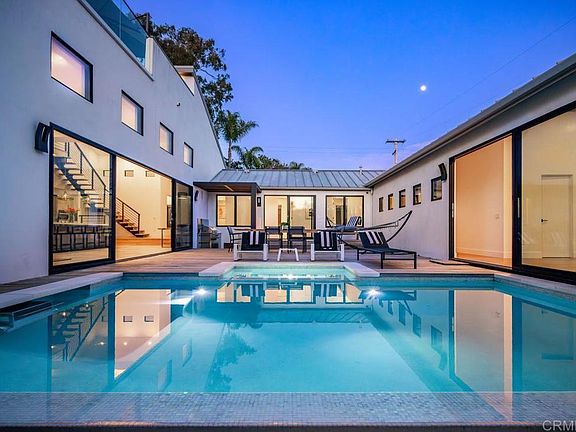 Completely fenced & privately gated, single level custom-built home with ocean view rooftop deck, detached ADU, pool & mature fruit trees all atop a flat 1/2 acre lot on a quiet private road walking distance to Capri Elementary School. The great room & kitchen feature soaring 16 foot ceilings & gorgeous 10 foot island with quartz waterfall countertops. Enjoy high-end Meile & Viking appliances & charming eat-in breakfast nook. Fleetwood doors lead to a 700 square foot courtyard deck connecting the primary suite to the kitchen & great room. The courtyard features a zero edge pool with concealed endless pool swim machine & built-in BBQ/sink. Custom-built steel floating stairs lead to a 720 square foot ocean view roof deck. The fully equipped one bedroom ADU with built-in Murphy bed, 300 square foot covered patio with 75 inch outdoor TV w/ surround sound & stunning hanging furniture. Opportunities are endless on the large flat backyard with plenty of space for a pickleball/multi-sport court. There is indoor & outdoor built-in surround sound at the great room, decks & patio. Other amenities include custom clear cedar garage & entry doors, paid for solar, RV parking, whole house filtration systems in main home & ADU plus attached two story storage. Located in beautiful Leucadia, this home is minutes from the beach & all the areas best restaurants, shops, schools & parks.
