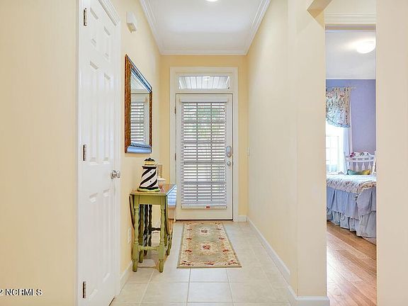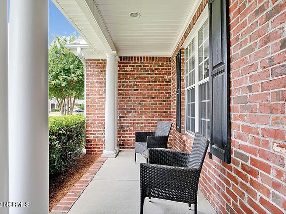 A perfectly maintained, beautiful brick townhome has an open floor plan & plenty of natural lighting. This home was lightly used as a second home by the original owner! The covered front porch leads to an inviting foyer. The fantastic kitchen features granite counters raised bar with room for seating, a pantry, cabinets with crown molding, travertine tile backsplash & stainless steel appliances convey. The living room has a gas fireplace with built-ins on each side. The dining room has a decorative light fixture and skylights. Adjacent to the living room is the Carolina Room, with plentiful windows. Outside the Carolina room is the fabulous three-season room with the EZE Breeze window system and tile flooring. End your day in your private primary suite with a large walk-in closet & a roomy bath with double sink vanity and walk-in shower. The second bedroom is in the front of the home and next to the second full bath. There is also a laundry room with cabinetry and an attached garage. Additional features include newer hardwood floors in the main living areas & bedrooms, HVAC replaced in the last six months, an 85-gallon water heater, keyless entry & blinds, and the roof was replaced in the last few years. Dues include master insurance policy, complete lawn maintenance, exterior building maintenance, and amenities. Resort-style amenities include a fitness center & clubhouse, indoor pool, two outdoor pools, tennis & pickleball courts, sidewalks, sauna, basketball, picnic area & playground. An optional 27-hole championship golf course with a pro shop and Blossoms Restaurant is also available. Near shopping, dining, medical plus Wilmington & area beaches!