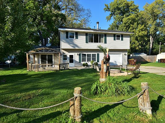 WATERFRONT!!! Enjoy watching nature from your front windows or sitting on your own private dock and waterfront deck. Very rare to find Fox River with year round access to fishing, boating, skating, skiing and snow mobiles. Highly sought after Prairie Grove and Prairie Ridge school district. This spacious home features three bedrooms and 2.5 bathrooms with a wood burning fireplace. Newer eat-in kitchen with loads of storage and counter space. Second floor features cherry wood floors and a desirable laundry room. The large yard features two sheds for storage, a covered front porch deck and a new fire pit. Home does require Flood Insurance. Property has 2 separate PINS. Don't miss out on a great opportunity to live on the water in a wonderful neighborhood