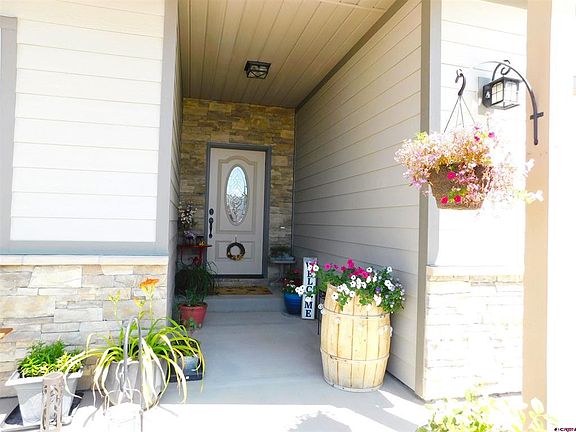 Welcome home to the desirable Bear Creek Subdivision…where the lovely tree lined drive leads you to a peaceful community with private pond and an amazing open grassy park area for homeowners to enjoy outdoor recreation in the beautiful Colorado sunshine! Enjoy the comfortable living space this home offers, with its open concept living. Dining and kitchen featuring vaulted ceilings and an open and airy feel. Kitchen has been upgraded with granite counter tops, nice sized island with seating, black slate appliances, under cabinet lighting, and pantry. Dining area is tucked in conveniently off the kitchen. Layout of the home is efficient and makes for easy living. Master bedroom is nice sized and feels bright and open. Large, upgraded master bath, featuring granite countertops on the double vanity and a luxurious feeling, generous sized shower with adjustable spray wand, regular shower head and even an amazing rain shower!! You’ll find a walk-in closet within the bathroom, as well as storage space behind the door. Home has lovely upgraded wide louvered blinds throughout that add style and function, plus upgraded ceiling fans throughout for efficiency. Backyard is fully privacy fenced and there’s a large covered patio with ceiling fan, plus cute little seating nook that face East, to take in the amazing Colorado sunrises and keeping it cool and shaded in the summer, while front of the home is perfectly situated West/South exposure to melt the snow in the winter months. concrete sidewalks with extra light fixtures on both sides of the home for extra yard space enjoyment. Come experience the community of Bear Creek, situated only minutes from shopping, restaurants, schools and so close to all Montrose has to offer!