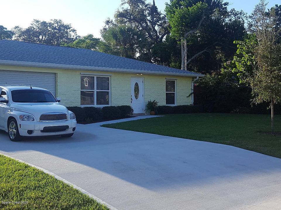 2007 CONCRETE BLOCK HOME. OPEN FLOOR PLAN WITH DINE IN KITCHEN. THREE BEDROOM, TWO BATH WITH LARGE COVERED PATIO. VIEW TURKEY CREEK FROM YOUR FRONT DOOR. ALL NEW IN 2018 ROOF, ALL MATCHING TILE FLOOR, WATER HEATER, DRIVEWAY, HURRICANE SLIDER, AND PATIO ROOF. 300' FT OFF THE WATER WITH QUICK ACCESS TO BOAT RAMP, FISHING PIER, BEACHES, BIKE TRAILS, I-95, AND US1. 15 MINUTE WALK TO WORK AT HARRIS CORP., AND JUST MINUTES DRIVE TO MAJOR SHOPPING MALLS FROM THIS QUIET DEAD-END STREET. TAXES LISTED ARE WITHOUT HOMESTEAD.