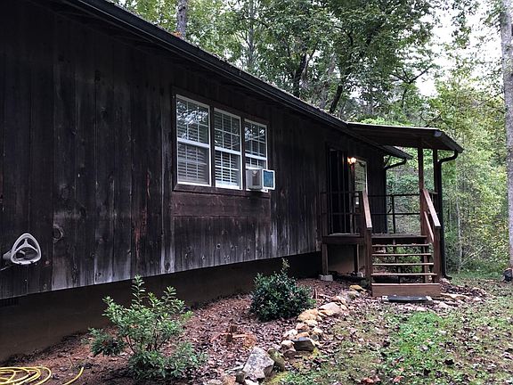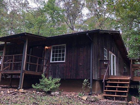 Secluded cabin on 7.44 acres with pond and creek. Large living room with fireplace, country kitchen, huge deck overlooking pond and creek. This house was built in 1975 it has electric baseboard heat and window AC.