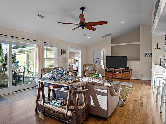 This stunning sound front home could easily gloss the pages of Coastal Living Magazine! The open-concept kitchen, living and dining area exudes a cozy cohesiveness with comfy furnishings to take in the spectacular views. This area is bright and open with cathedral ceilings and a plethora of windows. This main floor will surely impress your friends and family as you use your culinary skills to match the amazing water views. The kitchen provides eat in bar, granite countertops, upgraded cabinets with under cabinet lighting & stainless steel appliances. You’ll love the wall-to-wall windows in the quaint versatile breakfast room. This could also serve as home office or extra area for evening entertaining while taking in amazing sunsets or a cozy reading room. On the top floor, you will find a truly spacious primary ensuite with a wall of windows to take in expansive waterfront views and access to outdoor deck. The primary bath comes with granite double vanities, soaking tub and large walk-in tile shower. Additionally, there is a second bedroom on the top floor with a full bathroom. Head downstairs for a great second living area complete with wet bar. And, of course, amazing views! You will find three additional guest bedrooms and two bathrooms. The living room and two bedrooms have sliders to access the outside decking, pool and hot tub area. The large backyard has abundant water frontage and plenty of space for cornhole, horseshoes and all your favorite water activities such as boating, jet skiing, kayaking & fishing/crabbing. You will notice the sense of privacy as there is no neighbor on the right side facing the water. You’ll also love the two car garage plus a smaller third garage which would be ideal for motorcycle, golf cart or for your beach storage! This property is part of Snow Geese and has private community sound and ocean front access. It is about a 5 minute walk to the beach. This home has been lovingly cared for and some of the improvements by the owner include: 2019: Replaced all 5 sliding doors, added hot tub, exterior fencing 2020: New roof and pool transitioned to salt water 2021: Replaced one HVAC system, new carpet, new window blinds, dryer and kitchen refrigerator 2022: Replaced sound access platform, mattresses in 4 guest bedrooms, 5 new smartTVs 2023: New LVR flooring downstairs 2024: New range/oven & microwave, new washer, kitchen tile backsplash Please note the black kitchen appliances were replaced with brand new stainless steel. These were replaced after the professional photos were completed. Don’t miss this Duck Soundfront beauty or large private lot. Price recently reduced by $90k and listed under recent appraisal!