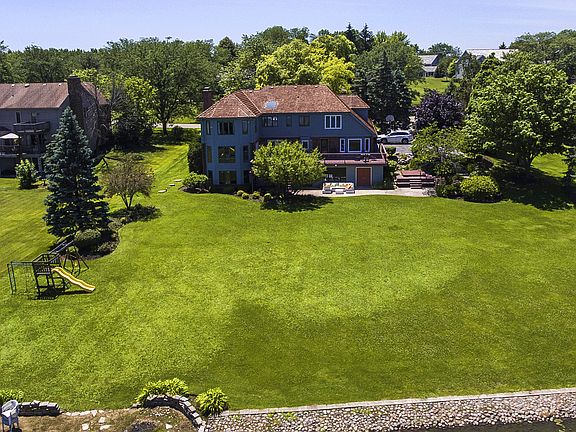 Location, location, location! Waterfront home on a beautiful lakefront parcel. The front door opens to a two story foyer. Stepping in you find a bright & large living rm w/vaulted ceiling. Moving to the back of the home, lake views can be seen from every window. The family rm has a brick frplc w/gas & is open to the generous size island kitchen remodeled in 2009. There is access to the deck from both the family rm & kitchen to take in the impressive lake views. An ample den/office, dining rm & laundry rm complete the main level. Upstairs the master suite features a tray ceiling, large walkin closet & plenty of windows to gaze at the lake. 3 more bedrooms & a bonus rm complete the 2nd level. The full walkout lower level offers more lake views from almost every rm. There is a 2nd kitchen, theater area, rec rm, sunroom, full bath & bonus rm. Updates include many windows, kitchen, hot tub, furnace, deck, driveway, garage doors & openers & more. Vacation everyday right from home!