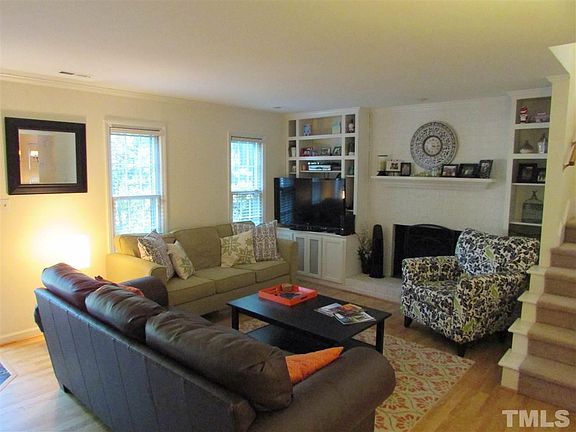 Private end unit townhome with updated kitchen, granite counter tops, crown molding, wainscoting & laminate floors. Delightful living room with brick fireplace, gas logs & bookcases/bookshelves. 13'x10" patio & 7'x4" storage shed. Close to Cameron Village shopping and Jaycee Park & Community Center