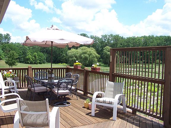 Fantastic custom built home by Randy Barkley. Space and style are what awaits you in this 5100 square foot home with a walk out lower level. Beautiful hickory floors, cathedral ceilings & fireplace highlight the main floor living area. Spacious kitchen with hickory cabinets and island breakfast bar. All appliances stay with this home. The master suite offers a large bedroom with double walk-in closets, jetted bath, seperate shower, two sinks & cathedral ceilings. The lower level has a huge 45 x 20 family room with fireplace, seperate 34 x 20 theater room with ceiling projection theater equipment and bar area, full bath and bedroom. Large concrete and paver patio as well as wood deck provides beautiful golf course views. Three car attached garage, security system and so much more. This home is a showplace!