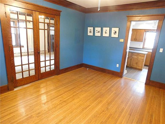 For sale- one of Grinnell's classic 1 1/2 story Bungalows with three bedrooms and two bathrooms, located one block East of Grinnell College on Elm Street. Lovely hardwood floors in the formal dining room, hardwood floors are also under living room carpet and the office/library carpet. The first floor includes the living room with wood burning fireplace, formal dining room, and pretty French doors, a nice sized kitchen with island, a full bathroom, office/library, and a four season porch. Upstairs includes three nice sized bedrooms with large closets, and a 3/4 bathroom. Electrical panel was updated to 200 amp when purchased in 2010. New roof in 2011. Steel siding, boiler heat, window air conditioning, and a one car detached garage complete the home. The lot is a nice size, 75' x 194' deep with a working alley and lots of mature landscaping. Easy walk to the college or Ahren's Park. Schedule your look today!