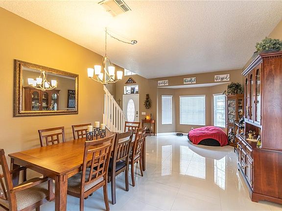 STUNNING TWO STORY home, waiting for its new owners. This extremely spacious 4/5 bedroom and 3 separate bathrooms boasts 2714 square feet interior and almost 3800 under roof. The beautiful 24 x 24 porcelain tile is throughout the living area downstairs. You will enter the home into a spacious foyer that leads into the formal living and dining rooms to include a bay window. This kitchen was made for large gatherings. It has beautiful maple wood cabinets and granite countertops, recessed lighting, island, breakfast bar and stainless steel appliances.(DW, REFRIG 2020) You will find a large family room just off the kitchen with sliders to the covered patio. The upstairs is where the master bedroom and bathroom are located along with 2 other bedrooms, full bathroom and a loft/ media room or 5th bedroom. the uses are endless. The home has had some recent updates ROOF (2016), new hot water heater (2019), water filtration system (2019), new closet system (2019), new AC system with a 10 year warranty (2019). The home is located at the end of a cul-de-sac that makes for a private and quiet setting. This home has been meticulously maintained and it shows. The 3 car garage has enough room for all of your storage needs. This property is close to public transportation, schools, shopping, restaurants all with easy access to 451/429.