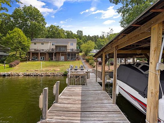 Lake living at its best with beautiful views of Badin Lake. Come settle right in with your friends and family in this furnished home with an expansive deck overlooking the lake. Remodel completed in 2017/2018 including updated kitchen and bathrooms, finished upper level bonus room with built in twin cubbies, new basement flooring and finished living space. The large bonus room is a great place to gather to watch TV or play games. There is also a separate basement level in-law apartment - this area is perfectly set up for VRBO or short term rental. Home has a shared boat dock with new 7,000 lb boat lift installed March 2022. No HOA dues! This home has everything a family will want to live a happy life on the water! Kayaking, paddle boarding or just floating in the easy to access cove, right from the dock.  New roof and hot water heater in 2023. New boat lift in 2022.