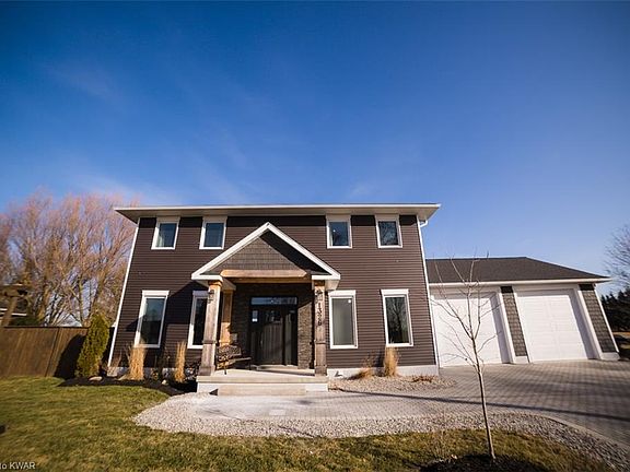 Breathtaking luxury custom executive home, built in 2018. ICF construction, this home is very well built and a rare find! Modern meets country living! On the edge of family friendly Wellesley, just outside of Kitchener-Waterloo. Sitting on a half-acre of land, and backing onto beautiful and peaceful country fields. This is a true dream home and a must see! This 5 bedroom 3 bathroom home features over 3000 finished square feet of living space. Amazing custom interlocking brick driveway and walkway, and double car garage which is 25.5 feet deep by 28 feet wide. With 10 by 10 foot doors. Inside the garage 11 feet 6 inches tall. Huge WOW FACTOR walking inside the home, 19 foot high foyer ceilings. Amazing maple staircase leading to this open, bright, spacious, and gorgeous main floor. This is your dream kitchen! Gorgeous cabinetry, quartz countertops. Large 8 by 4 foot kitchen island! Beautiful no-fingerprint slate appliances and matching slate range hood. Walk-in pantry! The ceiling height on the main floor is an impressive 9 feet 10 inches. Large dining area leading to an oversized sliding patio door and amazing backyard and country views. The living room is fantastic with built in custom fireplace and tv feature. Beautiful sliding barn door to the laundry and mud room area with inside access to the garage. Main floor office. Main floor bathroom. Upstairs: 5 bedrooms. The master is impressive with walk-in closet and gorgeous en-suite. Each bedroom is a great size. Beautiful 4 piece bathroom on this level. In the basement, this rec room is massive: 29 by 17 feet. A ton of space for storage down here as well. The roof features 50 year shingles with transferable warranty. All interior walls have safe and sound insulation. This home is very quiet. Full foxblocks ICF construction from the footings to the roof. Outside there is an amazing deck space and built in bar. Book your showings ASAP! **SEE FULL VIDEO TOUR**