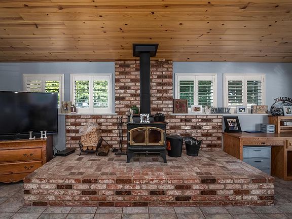 This home has a spacious feel and an outstanding yard! Beautiful custom floors cover the living area and into the custom kitchen that looks over your back patio and yard. Perfect for entertaing and plenty of room for all of your toys with the drive through shop and extra storge shed. Step down into the livig room to enjoy the wood burning stove on the large brick mantle. This home is ready for you to make it your own!