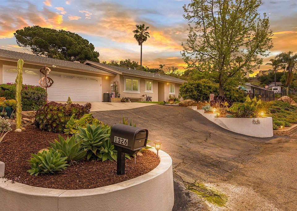 Looking for a little bit of country but still close to urban amenities? Come experience the peace and tranquility of this quaint Fallbrook Charmer! Situated on an oversized and usable half acre +/- lot, this 1200+/- sf comfortable, ranch-style 3 bed-2 bath home is just what you have been searching for! Brimming with CUSTOM UPGRADES throughout! Some of the notable highlights include: Freshly painted exterior and some interior rooms, new Lifeproof® Fresh Oak vinyl flooring and durable porcelain tile flooring, beautiful Corian kitchen countertops & tile accent backsplash, resurfaced bathtubs, and new baseboards throughout the entire home. Unfiltered natural light streams through the new Milgard® Windows. Relax or entertain in front of the impressive natural stone living room fireplace. Easy indoor/outdoor living flows through the sliding patio door that leads to the attractively landscaped brick covered patio. Thoughtful hardscaping and landscaping wraps around both the front and backyard areas. Mature, bountiful citrus trees are ripe and ready to be picked! Fully fenced backyard has a new firepit and children's play structure. Elevated so you can take in the breathtaking westerly views of the distant mountains and the spectacular sunsets skies. Extra-large 3 car garage with a partitioned wall and separate interior access door. The 2-car section has been finished with HVAC and epoxy floors. Newer AC & Furnace, New OneWater® Whole-House Water Filtration System. Most appliances will convey with an acceptable offer. Energy efficient with a newer 31 Panel Grid-Tied Solar System installed in 2019 and 2020. Many improvements were completed in anticipation of building an Accessory Dwelling Unit (ADU). Current owner has completed a separate driveway with gated access leading to an RV Pad built with Tru-Grid® pavers and a newer storage shed. Larger lot allows plenty of room for future customization, development or uses such as pool as well as a guest home (ADU). Enjoy this suburban country setting just minutes from the quaint downtown area of Fallbrook, just outside of Temecula Wine Country. Just minutes to Marine Corps Base Camp Pendleton. Close proximity to San Diego, Orange and LA County metropolitan areas via nearby freeway system interchange. Fallbrook, CA is located in the Northern Foothills of San Diego County. Locally known as the “Avocado Capital of the World” and “The Friendly Village”. Fallbrook offers a relaxed vibe with many shops, restaurants, activities, and events to enjoy year-round. Outdoor recreational activities abound with something for everyone: hiking, equestrian, biking, hobby farming, agriculture, and fishing.