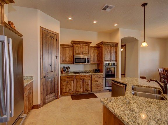 Beautiful home in the prestigious community of Northbridge. Great floor plan with 6 bedrooms, including casita, 4.5 baths, large kitchen, 2nd kitchen in basement, theater room, nice upgrades, covered deck with gorgeous views, large covered patio, private backyard, firepit, & RV parking. Great quiet location close to the golf course, with easy access to I-15, shopping, restaurants, and recreation.