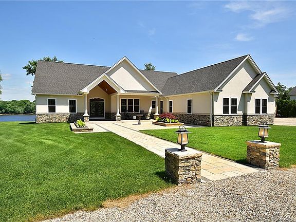Retreat, relax, rejuvenate This hidden waterfront newly constructed, custom Ranch with 260' frontage on the Connecticut river is positively spectacular Designed and built for maximum comfort and minimal maintenance--this home is impressive with its superb quality workmanship and materials. An open floor plan rich with details like the glorious windows, arched doorways, gorgeous hardwood floors, pocket doors, dual fireplace, 3 zone gas heating, central vac, main floor laundry and so much more. The heart of this home is a gorgeous Kitchen, beautiful cabinets and back splash, and an amazing island with breakfast bar and an under the counter fridge. What sets this home apart though is the absolutely stunning water views from the gorgeous windows whether you are cooking and entertaining in the Kitchen and Family Room or waking up in the serene Master Bedroom suite with its gorgeous spa like bath and heated floors. Watch the sun dance on the water as you eat breakfast or enjoy the views from the tiered patio. The unfinished basement boasts 9' ceilings and can easily be finished if you choose. From here you can walk out to the patio and soak it all in There is a 100+ year old barn (60x30, 30' tall recently refurbished on the property so you can store your watercraft, vehicles, workshop, office etc. Private, spacious, low maintenance, convenient boat access to the river, this is quite a rare and incredible property--see it today and you'll fall in love