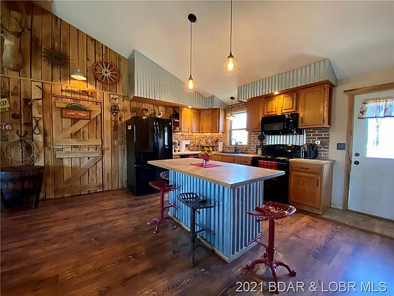 Country Charm at its finest! Built in 2017, the gorgeous log-style siding, vaulted ceilings, barn wood accent wall, and barn doors throughout the whole house make this home Pinterest worthy! The open-concept floor plan gives the area a spacious and modern feel. The kitchen showcases beautiful oak cabinets and a butcher block island that doubles as the dining table with repurposed tractor seat chairs that are includedâa great use of space and functionality! The utility/mud room has a huge pantry and closets that provide additional room for storage. The property features just over 4 acres with a pond currently stocked with multiple fish, concrete patio area perfect for barbecues and bonfires, fenced in area great for pets behind the house, as well as a chicken coop and enclosed space on the NE corner. The land lays very gentle with tons of parking space and room to expand the house or build another structure. Located just a few minutes from 7 Hwy, no HOA fees, and no restrictions!