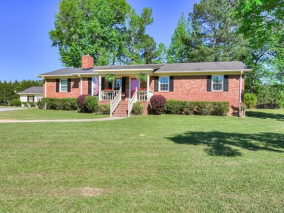 Beautiful 4.6 acres with updated 3 bed 2 bath brick ranch home in the Double Branches neighborhood in Lincolnton Georgia, less than 2 miles from the Rocky Branch Golf Club, and a short walk/golf cart ride to the lake! Enjoy the large brick fireplace (newly installed Osburn insert heats entire house), new windows, pine floors, cottage kitchen, rocking chair covered front porch, and bonus playroom/musicroom! Fantastic outdoor living, Brill and Catfish fishing options in the pond out front (owned by neighbors), Canadian geese and ducks swim it in the Fall, turkey and deer that wander the property, and new stone firepit for late night barbeques. Home includes 2 car carport, single car garage with workout room and storage space, golf cart, kayaks, riding lawn mower and other lawn equipment, special therapy/training level swim spa, crab apple trees, partially fenced pasture with 2 covered stalls, and easy access to the boat ramp .25 miles away. Come experience a quiet restful place!